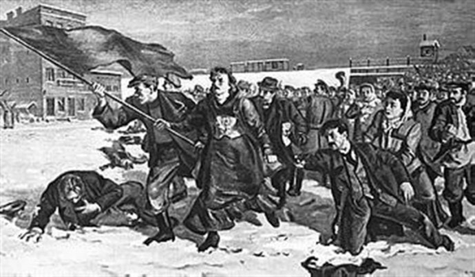 13 января 1905 года рижские рабочие в знак солидарности с питерским пролетариатом объявили всеобщую забастовку. Демонстранты под красным флагом шли к центру города. На набережной они наткнулись на унтер-офицерскую роту, которая по приказу губернатора открыла огонь по безоружным бастовавшим. Восемьдесят человек убиты, сотни ранены. Петерис Стучка назвал это «днем действия и неповиновения». В память о тех кровавых событиях в 1960 году у железнодорожного моста был открыт памятник, а улица переименована в «13 января».