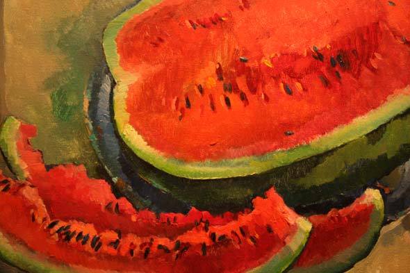 В Доме Черноголовых, где до конца февраля открыта юбилейная выставка живописи Людмилы Перец, думаешь о разном. О том, скажем, что напряженно ожидая и надеясь на счастливые перемены, мы как-то забыли о красоте. О том, что цветы на подоконнике, желтый автобус в дождливый день могут радовать глаз, женское лицо озарять любовь, а арбузная долька в спелых семечках — просто так, без видимой причины поднимать настроение. Яркая, темпераментная, раскованная живопись Людмилы Перец — тому напоминанием…