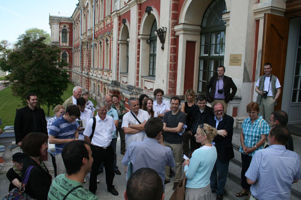 На ступеньках расстреллиевского дворца, о котором, кстати, увлеченно и с исключительным знанием дела рассказал добровольный гид, уроженец Елгавы Юрий Петров. Но главные встречи и разговоры еще впереди…