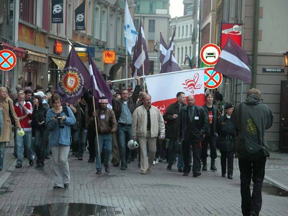 Да и на митинг профсоюзов пришло меньше людей, чем ожидалось. А ведь он был широко разрекламирован, готовился месяц. В доме, где я живу, чуть ли ни вся стенка в подъезде была обклеена призывами идти на митинг. Но все листовки — только на госязыке. А большинство жильцов дом — русскоязычные. Возможно, они решили просто проигнорировать «латышское» мероприятие? И, не исключено, сберегли нервы. Ведь на профсоюзном митинге были и люди с таким плакатом: «Нашу пенсию съели гражданские оккупанты».