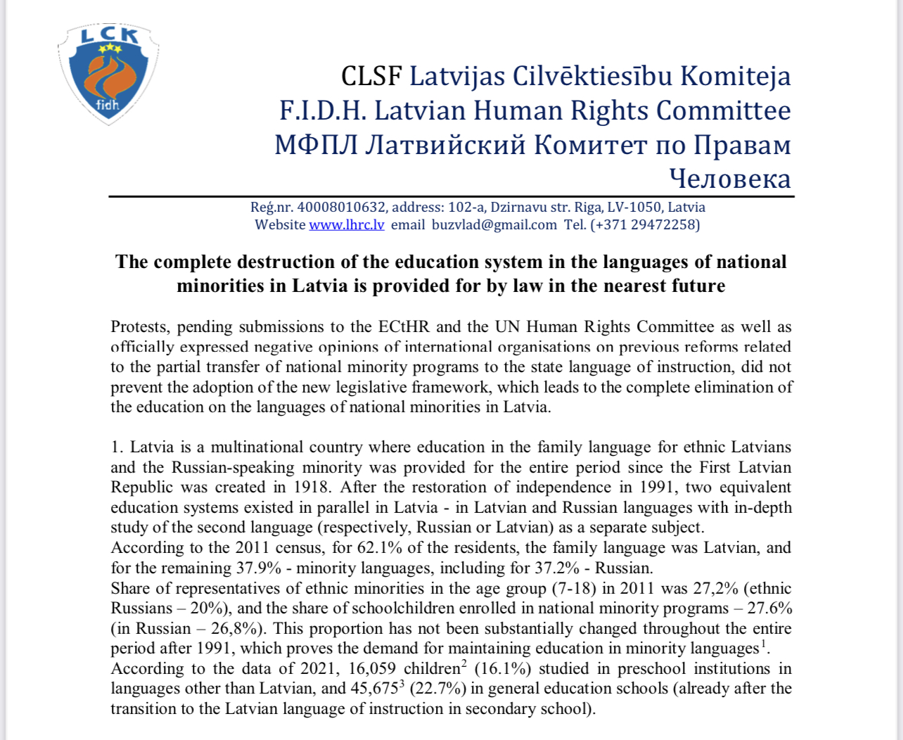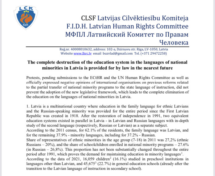 Library The complete destruction of the education system in the languages of national minorities in Latvia 16.12.2022 732 READ MORE Share: