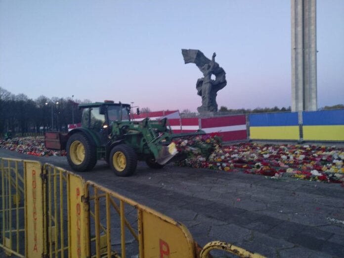 In early morning hours of May 10th the authorities of Riga destroyed all flowers laid to the Monument to Liberators in Pardaugava. To destroy thousands of bouquets, tractors were sent. This is not someone’s personal mistake. This is a premeditated symbolic act which reveals the attitude of the authorities towards those hundreds of thousands of Latvians who cherish the May 9th tradition.
