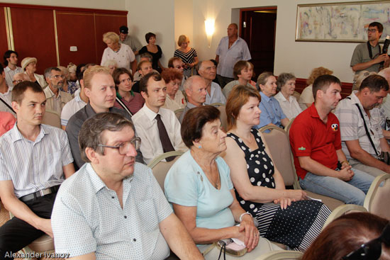 Собравшиеся в конференц-зале гостиницы ‘Моника’, чтобы почтить память жертв вооруженного конфликта в Южной Осетии.