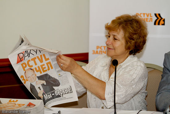 Татьяна Жданок со свежим номером газеты ‘Ракурс’ в руках