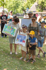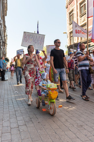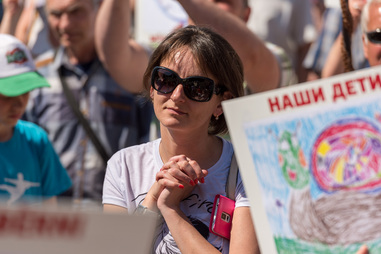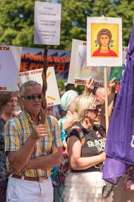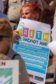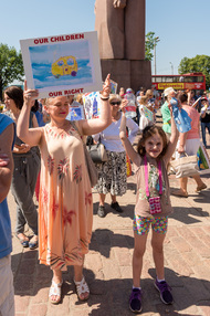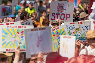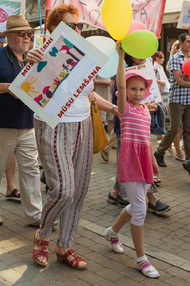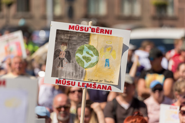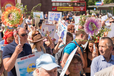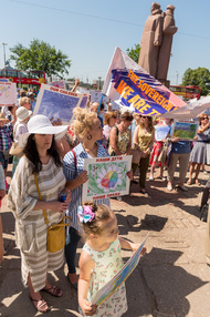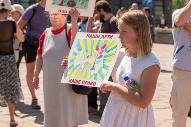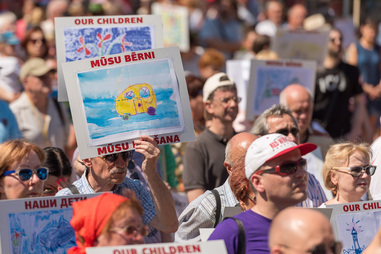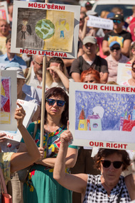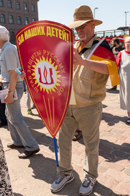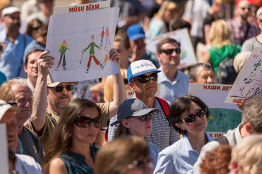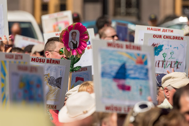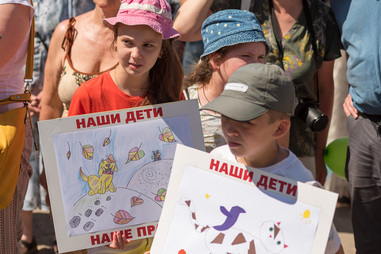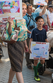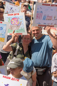 Детей за щит! Защитим детей! – провозгласила Татьяна Жданок. Более ста участников шествия держали плакаты с детскими рисунками и надписями: Наши дети наше право.