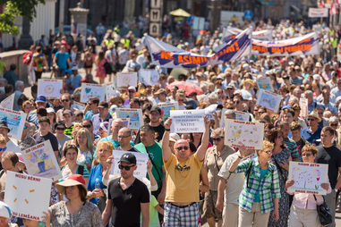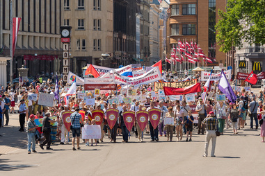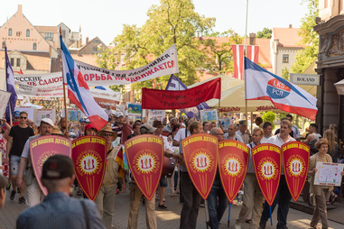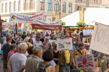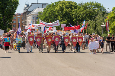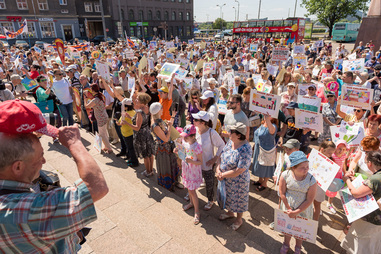 В организованном Штабом защиты русских школ и Русским союзом Латвии шествии и митинге в защиту русских школ в центре Риги, несмотря на жару и запугивания, приняли участие почти 5 тысяч человек.