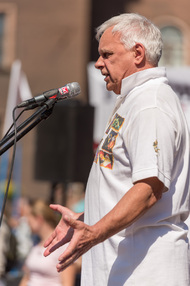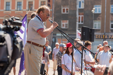 Открывая митинг, депутат Европейского парламента Мирослав Митрофанов отметил, что здесь собрались люди сильные духом, не побоявшиеся давления властей и не позволившие соглашателям дать себя уболтать. По его словам, на митинг, несмотря на жару и запугивания, собрались 3,5 тысячи человек и люди продолжают приходить.
