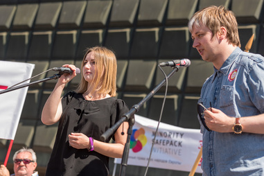На митинге выступила и представитель Европейского свободного альянса (он объединяет десятки политических партий, в Европарламенте есть фракция Зелёные/Европейский свободный альянс) Марта Боинко. Она выразила солидарность с русскими Латвии: Мы будем бороться вместе с вами!. Марта Боинко подчеркнула, что русские Латвии имеют право на образование на родном языке.