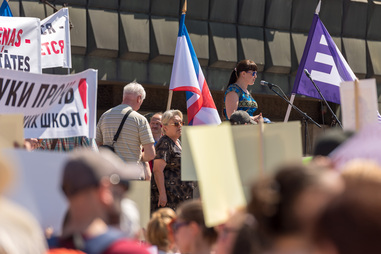 Мирослав Митрофанов в своем выступлении ответил на вопрос, когда власти начнут прислушиваться к защитникам русских школ когда число участников протестных акций резко увеличится. Осенью, по его словам, следует вывести на улицы 30 тысяч человек.