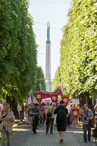 В Риге шествие в защиту русских школ прошло от памятника Латышским стрелкам до здания Кабинета министров. Когда защитники русских школ проходили мимо памятника Свободы, один из участников акции высказал мнение: Сейчас здесь идет намного больше людей, чем во время шествий 16 марта.