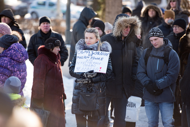 Участники митинга с тревогой говорили о том, к чему может привести отход от принципа, провозглашенного еще Екатериной Великой, то есть полный переход на обучение на неродном языке: к резкому ухудшению качества знаний, насильственной ассимиляции.