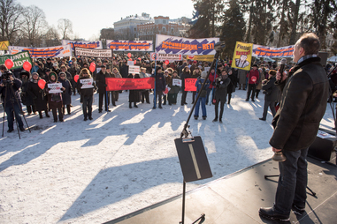 Хотя при открытии митинга сопредседатель Русского союза Латвии Мирослав Митрофанов и процитировал слова Пушкина: Мороз и солнце, день чудесный!.., было очевидно: при температуре воздуха ниже минус десять градусов, далеко не все недовольные оказались готовы выйти на долгую акцию протеста. Но всё же у памятника Райнису собрались пять тысяч человек получился самый многочисленный митинг в Латвии в нынешнем году.