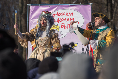 Союзником тех, кто защищает право на образование на родном языке, неожиданно оказалась императрица Екатерина Великая. На митинге было разыграно театрализованное представление, в ходе которого основательница первой русской школы в Риге (точнее, изображавшая ее актриса) обратилась к собравшимся. Прозвучали подлинные слова великой императрицы о том, что образование руководствует к жизни добродетельной, что в учреждаемых народных училищах преподавать будут на языке природном. То есть на родном языке учеников.