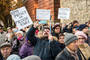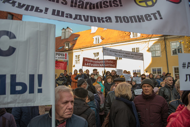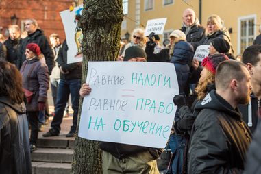 23 октября в Старой Риге прошел митинг протеста против планов правительства уничтожить обучение на русском языке в средней школе