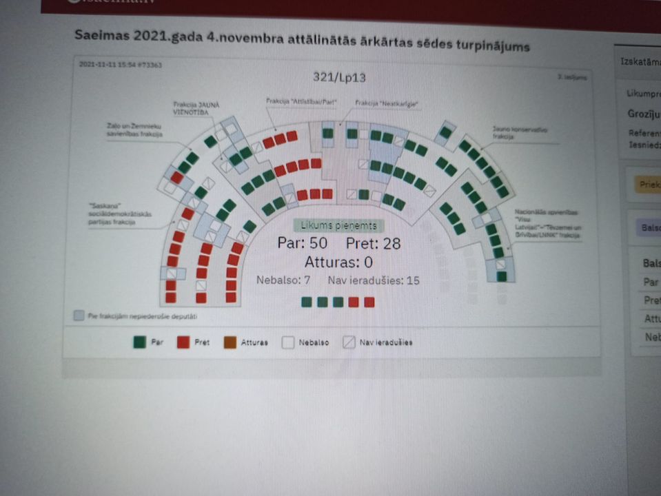 Мы хотим напомнить депутатам, что можно запретить ленточку, но никаким голосованием нельзя стереть память народа и заставить забыть историю! Напомним, что авторами законопроекта являются депутаты Янис Иесалниекс, Александрс Кирштейнс, Илзе Индриксоне, Ритварс Янсонс и Эдвинс Шноре. Референтом по законопроекту выступил Артусс Кайминьш.