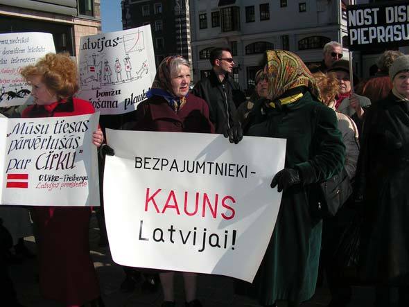 Во вторник у здания Рижской думы прошел пикет против массовых выселений, в которомприняли участие несколько сотен человек.