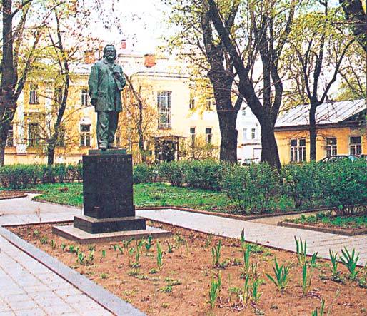 Верный делу ‘‘фантастического реализма’’, Михаил Афанасьевич слукавил. Не Грибоедов, а ‘‘колокольный’’ Герцен чугунеет — спиной к своему дому, а передом к решеткам ограды. Именно в Доме Герцена, а не в ‘‘Грибоедове’’ находится ректорат дневного отделения, проводятся лекции и семинары, оттачивается литературное мастерство.
