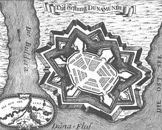 Шведы укрепляли Динамюнде почти три четверти века. Подошедшие в 1709 году к берегам Даугавы войска генерал-фельдмаршала Шереметева были немало удивлены. Крепость имела шесть пятиугольных бастионов, пять мощных равелинов. Шведские инженеры были не чужды романтики: бастионы поэтично называли Утренняя звезда, Южное солнце, Северный полюс, Вечерняя звезда…