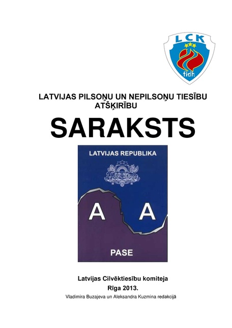 Vladimira Buzajeva un Aleksandra Kuzmina redakcijā, 2013, LATVIJAS PILSOŅU UN NEPILSOŅU TIESĪBU ATŠĶIRĪBU SARAKSTS