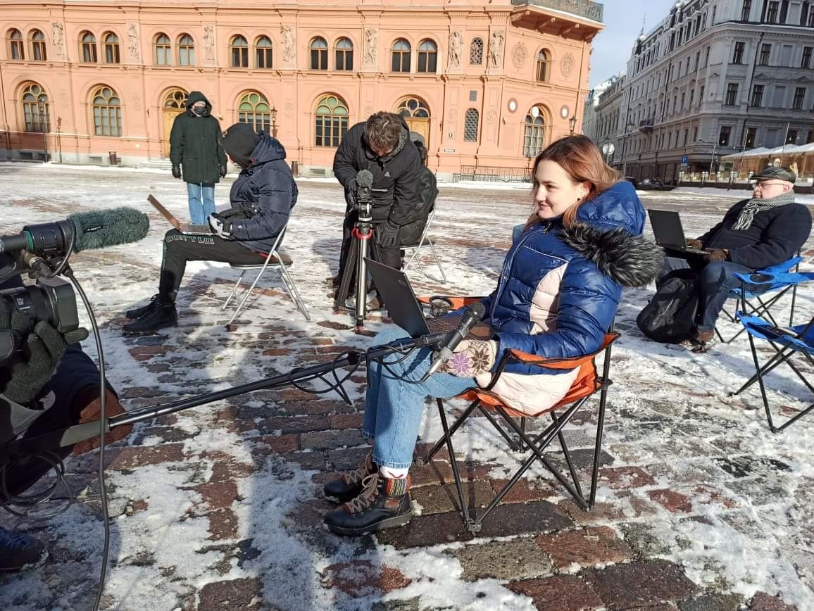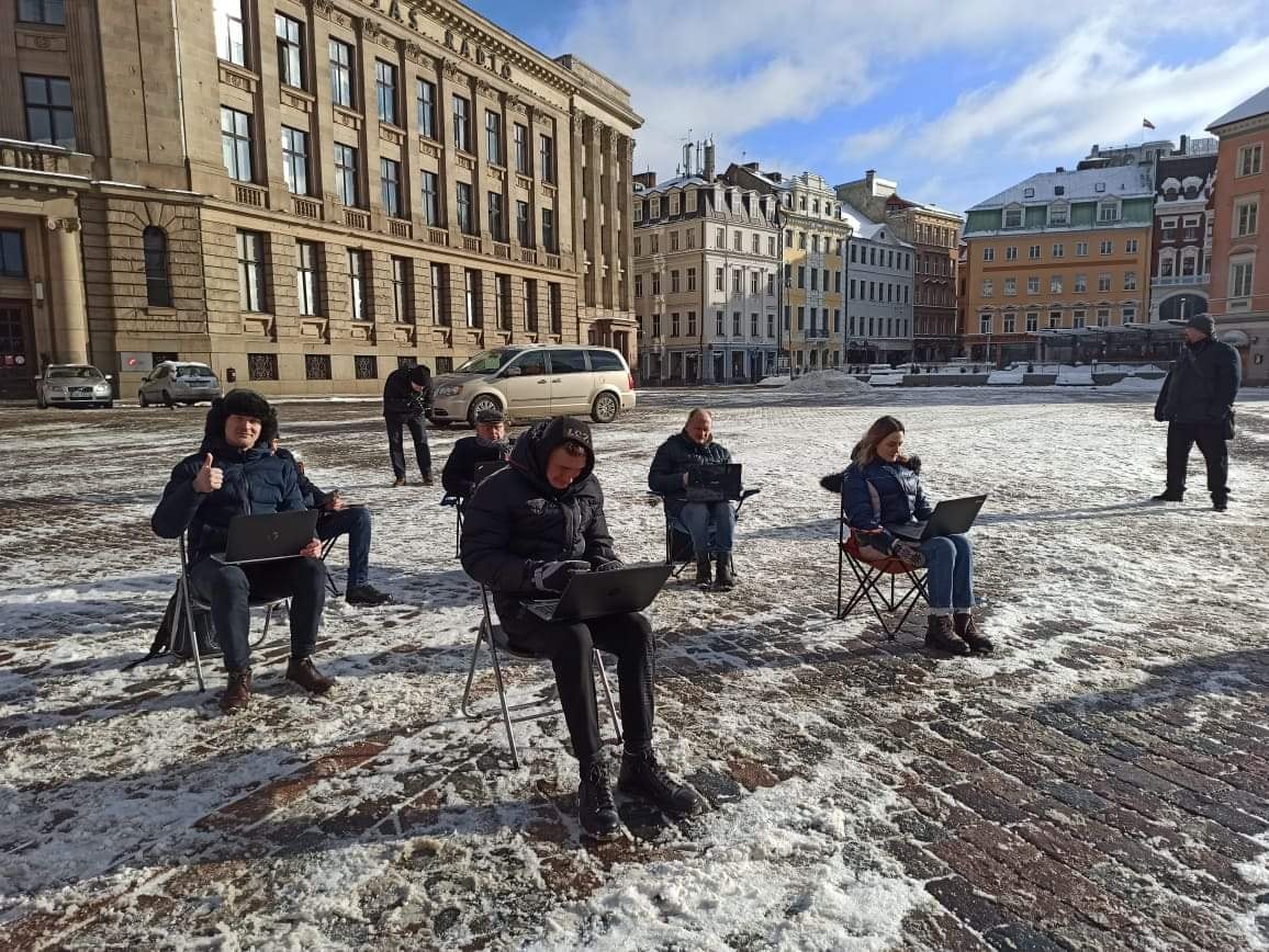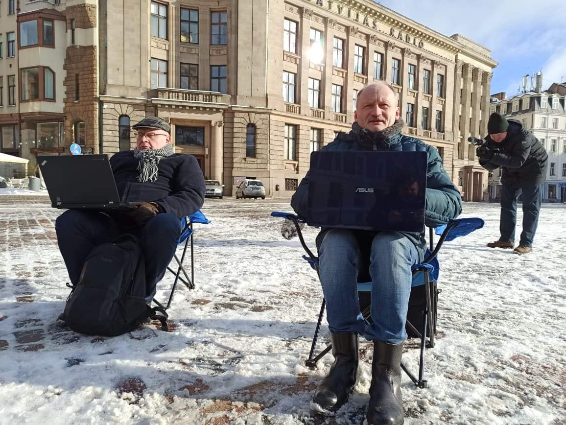 Сегодня на Домской площади, напротив офиса Национального совета по электронным СМИ (NEPLP) прошел спонтанный пикет. Его участники смотрели запрещенные недавно в Латвии телеканалы, показав тем самым всю абсурдность введенных ограничений на телевещание.