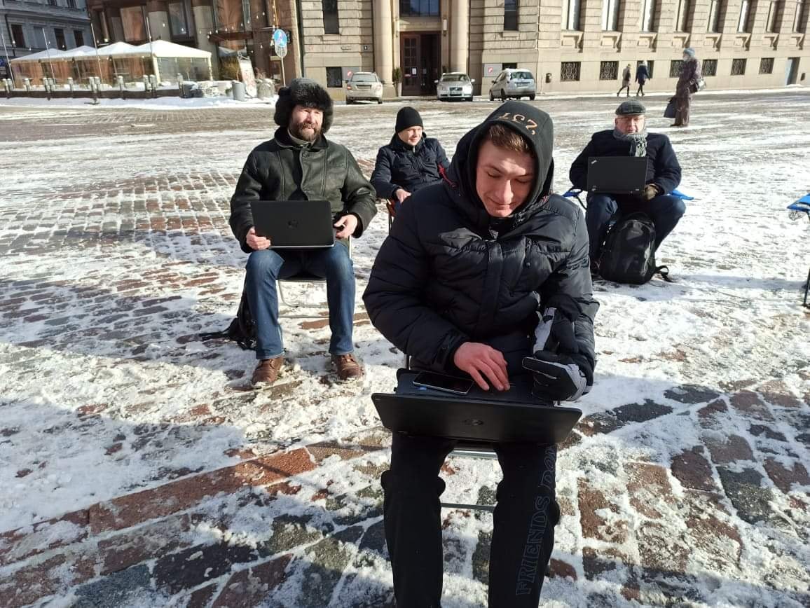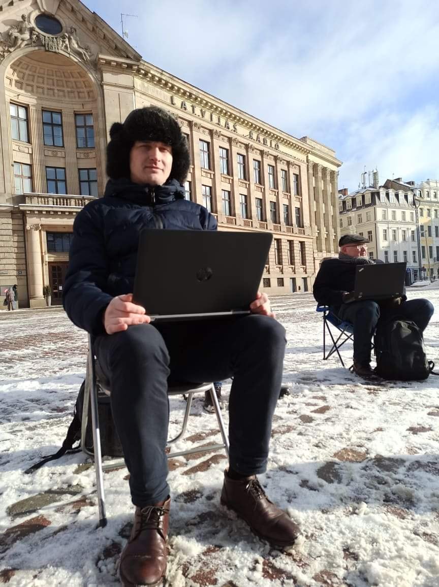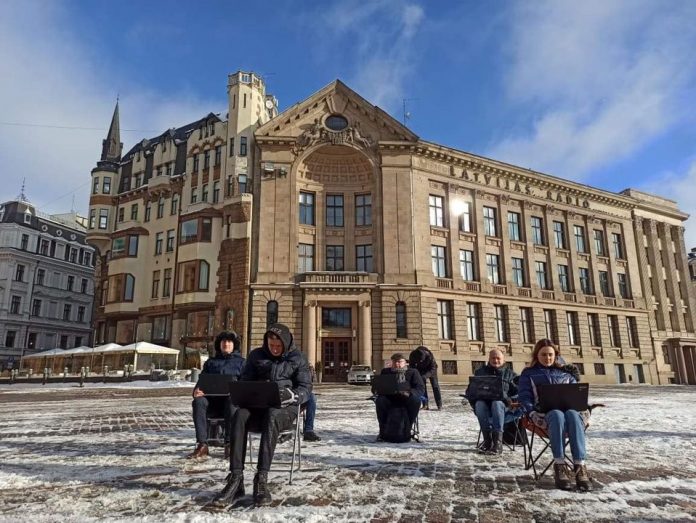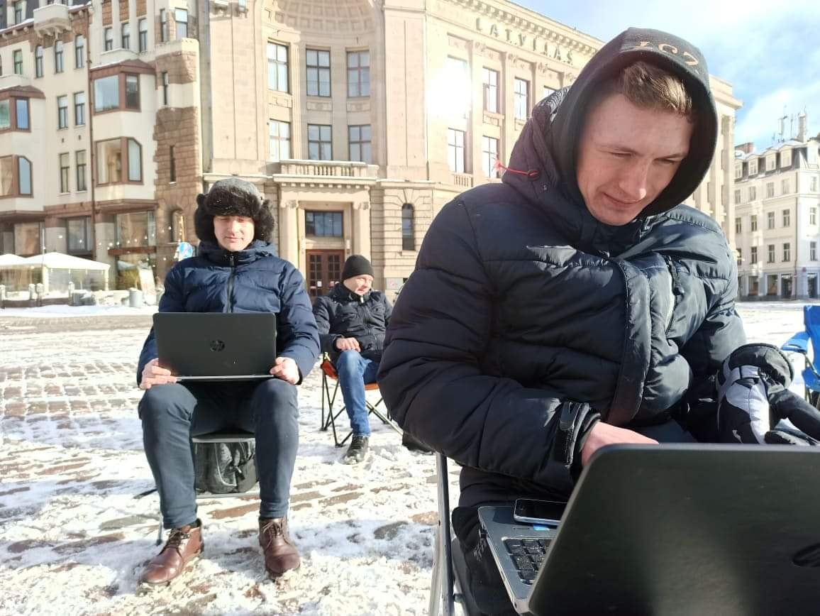Сегодня на Домской площади, напротив офиса Национального совета по электронным СМИ (NEPLP) прошел спонтанный пикет. Его участники смотрели запрещенные недавно в Латвии телеканалы, показав тем самым всю абсурдность введенных ограничений на телевещание.