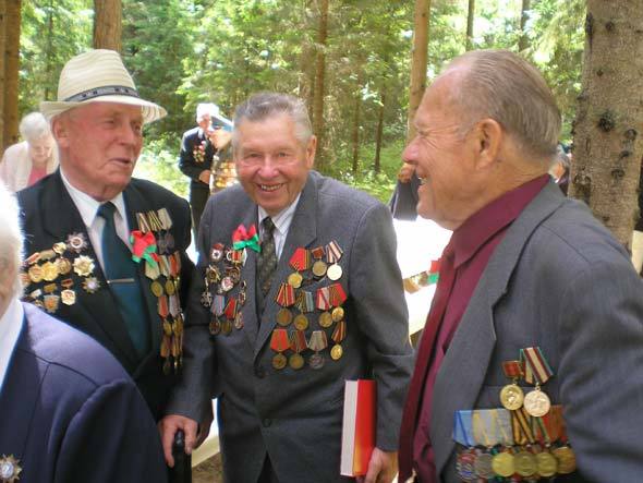 На место мы прибыли в 9.30 утра. После приветственных слов официальных представителей Псковской и Витебской областей, а также депутатов от Латвии начался митинг. Выступали ветераны, многих из которых в этот день ждали правительственные награды. Например, председателя Великолуцкого городского совета ветеранов войны, труда, Вооруженных Сил и правоохранительных органов, капитана 1-го ранга Валентина Егоровича Афанасьева наградили орденом Святого Александра Невского 1-й степени. Замечательно, за что этот убеленный сединами человек удостоился столь высокой награды, – за активную работу по патриотическому воспитанию молодежи. Его организация помогла создать музеи боевой славы в 25 школах города, в том числе музей Рокоссовского, музей Жукова, музей малолетних узников, музей 5-й ударной армии и другие.