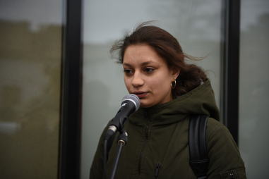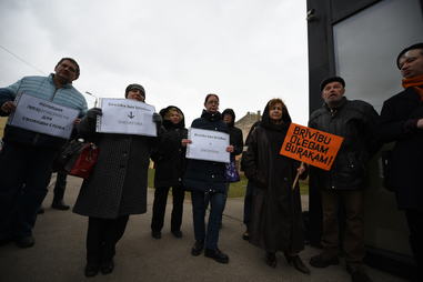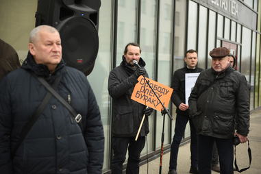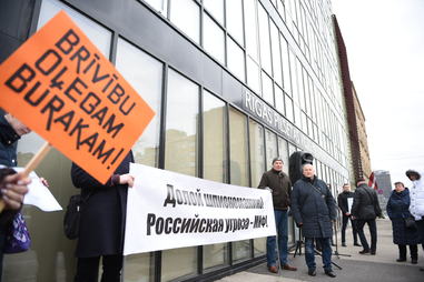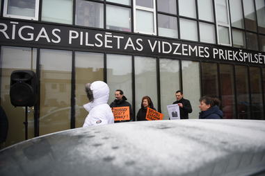 Латвийский антинацистский комитет при поддержке партии Русский союз Латвии организовал митинг солидарности с политзаключенным у стен суда. С речами выступили депутат молодежного Сейма ЛР и заявительница митинга Татьяна Андриец, сопредседатель РСЛ Татьяна Жданок, диссидент с солидным тюремным стажем Владимир Линдерман, президент Русской общины Латвии Владимир Соколов, сопредседатель Латвийского комитета по правам человека Владимир Бузаев и психолог Виктор Елкин.