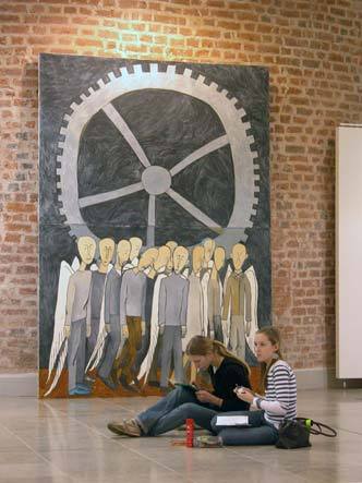 …Отправляясь на выставку, я испытывал чисто профессиональное беспокойство фотографа: утро обыкновенного рабочего дня, а значит, меня ждут пустые залы, и бродить мне и бродить в ожидании первого посетителя. Но оба выставочных зала оказались полны мальчишек и девчонок. Они рисовали. Старательно перерисовывали развешанные на стенах, а кое-где и прямо на полу картины, а потом начинали собственную импровизацию «на заданную тему». Дети были здесь дома. С ними тут говорили на их языке…
