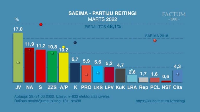 Также об увеличении нашей поддержки свидетельствуют и данные другой социологической компании Factum. По опросу этой фирмы в марте среди определившихся со своим выбором избирателей за нас были готовы проголосовать 5,6% респондентов. Тем самым, если бы парламентские выборы состоялись в марте, то Русский союз Латвии преодолел бы 5-процентный барьер, а значит была бы создана наша фракция в новом Сейме.