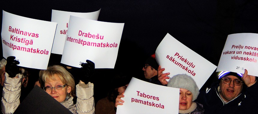 Русский союз Латвии и Штаб защиты русских школ провели в центре Риги флешмоб против массового закрытия школ в Латвии. Участники акции протеста выложили на смотровой площадке Бастионной горки более 250 плакатов с названиями закрытых школ Латвии. Именно столько учебных заведений было ликвидировано в стране за последние десять лет. Читать далее