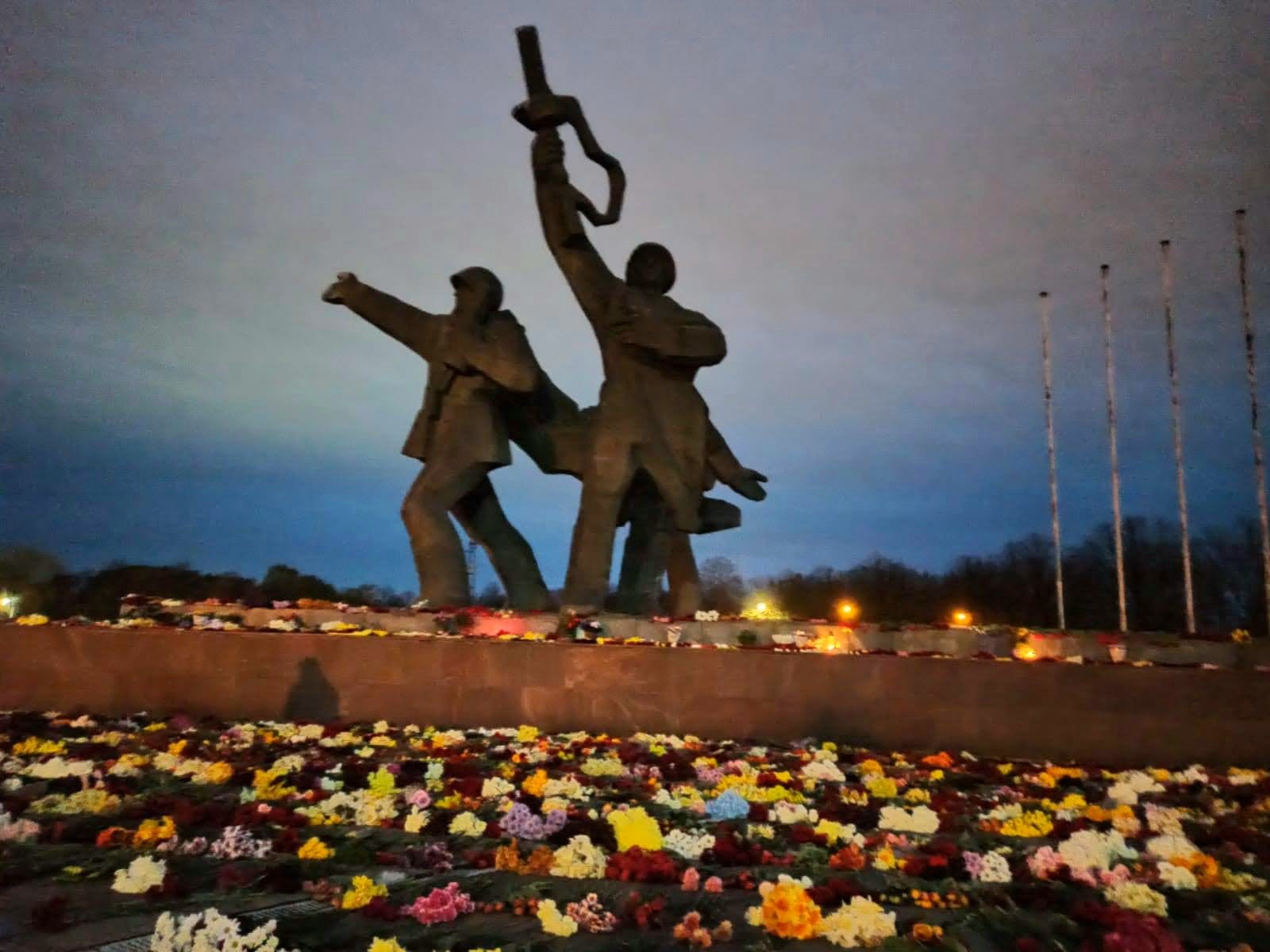 Работники Rīgas meži, которые переносили цветы от столов, на которые их клали участники акции, вели себя также очень корректно. Но для них это была лишь внеурочная работа, а не участие в общественной акции. Трудно было ожидать от них душевной заботы в отношении внешнего убранства монумента. Спасибо им за работу, но мы сами распредели бы цветы у памятника с большей любовью и старанием. Тем не менее, полиция отказалась от неоднократно предложенной помощи наших добровольцев.