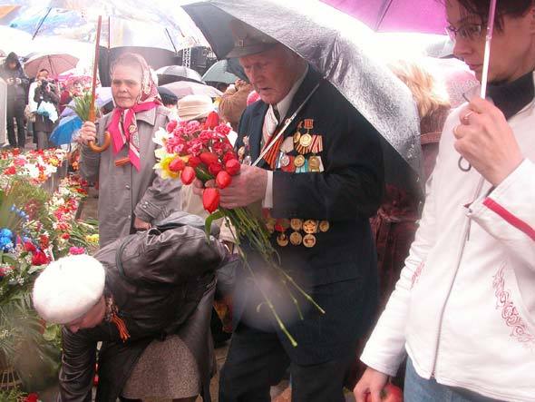 Фронтовики не побоялись (а как иначе сказать?!) придти к памятнику в форме, с боевыми наградами. Как, к примеру, Иван Ефремович Жгун. Войну он прошел в пехоте, участвовал в освобождении Латвии от гитлеровцев, здесь был ранен, лишился ноги. Ему уже 82 года. А из всех своих наград он из скромности надел лишь малую часть.