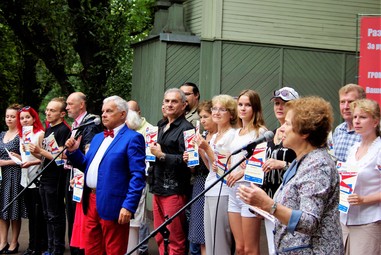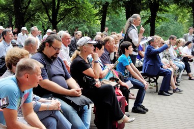 19 июля в Верманском саду активисты РСЛ и Штаба защиты русских школ провели ‘Стихомарш’. Публичное чтение классической и современной гражданской лирики было приурочено к 125-летию Владимира Маяковского, бывавшего и в нашем городе. Автор фоторепортажа – Д. Д. Жилин