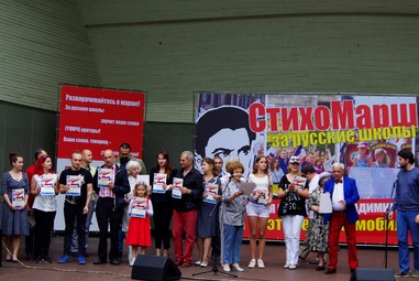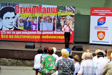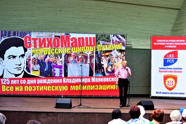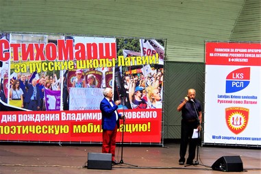 19 июля в Верманском саду активисты РСЛ и Штаба защиты русских школ провели Стихомарш. Публичное чтение классической и современной гражданской лирики было приурочено к 125-летию Владимира Маяковского, бывавшего и в нашем городе. Автор фоторепортажа – Д. Д. Жилин