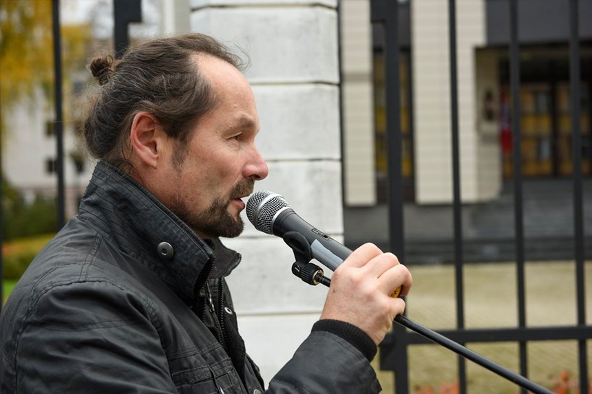 Выступая на митинге, общественный деятель Иосиф Корен отметил, что в тюрьме держат патриота Литвы, который не случайно был награжден литовским орденом.