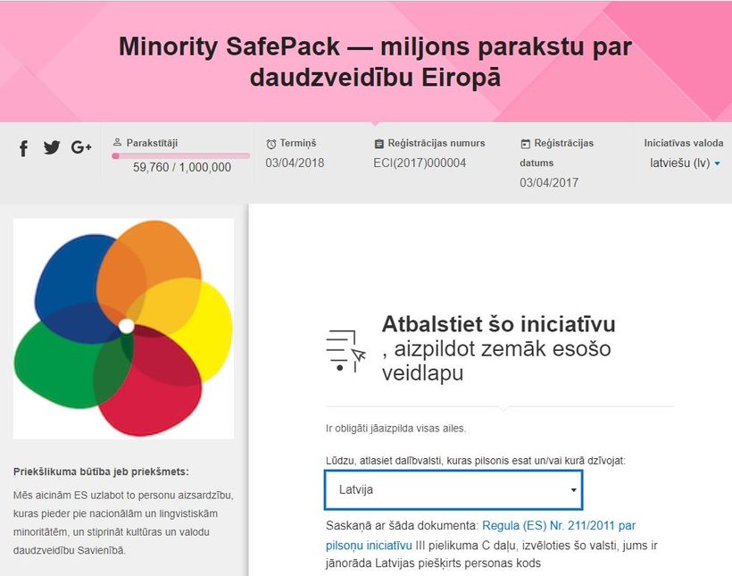Процедура простая. Подписываются совершеннолетние граждане Латвии на портале Еврокомиссии по ссылке