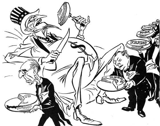 Карикатура Херлуфа Бидструпа, датированная 1949 годом. Немудрящая подпись к ней гласила: «Если дяде Сэму позволять так наедаться, то естественно, что в других странах будет ощущаться недостаток в продовольствии». Мысль, согласитесь, актуальная и спустя пол с лишним века. Если вспомнить, сколько денег из бюджета маленькой Латвии уйдет на НАТО…