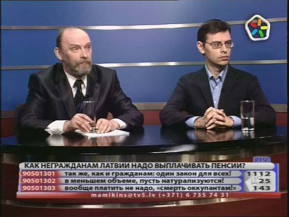 Правозащитники Алексей Димитров и Владимир Бузаев 30 марта в передаче Андрея Мамыкина «Без цензуры» рассказали немало интересного о пенсиях латвийских граждан и неграждан. Поводом для передачи стал тот факт, что Конституционный суд возбудил дело по иску правозащитников с требованием выплатить 57 тысячам неграждан 78 миллионов латов в качестве компенсации за не засчитанный им трудовой стаж, накопленный в советское время за пределами Латвии. Отметим, что звонки в студии значительно расширили тему предложенной дискуссии. Рекомендуем тем, кто не смог увидеть передачу в прямом эфире, посмотреть ее в Интернете по электронному адресу http://andrejsmamikins.livejournal.com