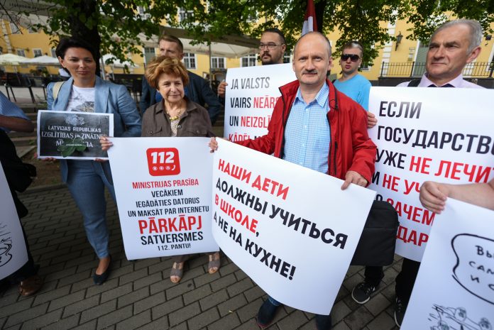 Русский союз Латвии провел митинг у Минобразования против планов Шуплинской узаконить “удалёнку” и навязать родителям дополнительные обязанности и расходы.