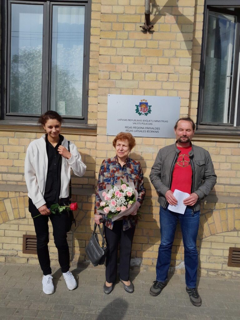 В чем заключаются предъявленные им обвинения пока не очень понятно. Все трое держали в руках плакаты на русском и латышском языках, предупреждающие людей о том, что данный митинг запрещен властями. Другого способа оповестить собравшихся о запрете митинга у нас не было, поскольку использование любой звуковой аппаратуры в такой ситуации невозможно.