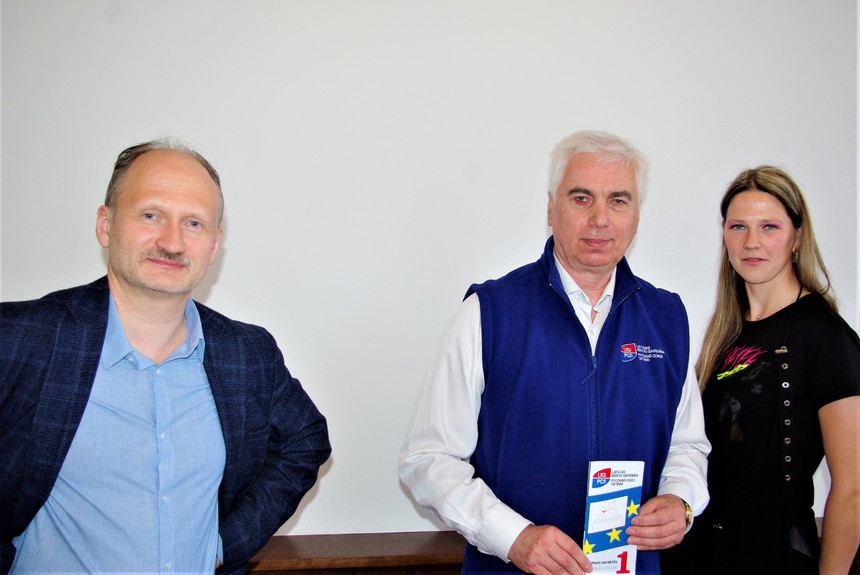 КАНДИДАТЫ В ДЕПУТАТЫ ЕВРОПАРЛАМЕНТА ОТ СПИСКА №1 (РСЛ) даугавпилчанин Мирослав Митрофанов, а также елгавчане Андрей Пагор и Виктор Гущин на встрече с избирателями в Елгаве 18 мая.