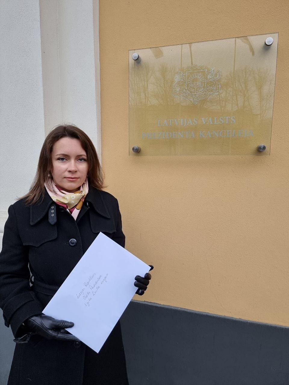 Сегодня мы передали президенту Эгилсу Левитсу обращение нашей партии с призывом не подписывать недавно принятые Сеймом поправки к закону “О собраниях, шествиях и пикетах” о запрете на использование георгиевских ленточек.